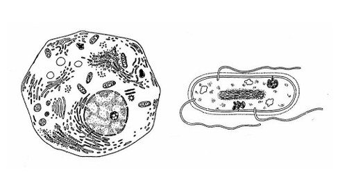 43. Slika prikazuje životinjsku i bakterijsku stanicu.