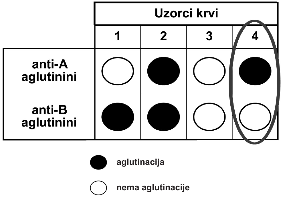 47.1. Kojoj krvnoj grupi pripada testirani uzorak označen na slici brojem 4 i zaokružen?