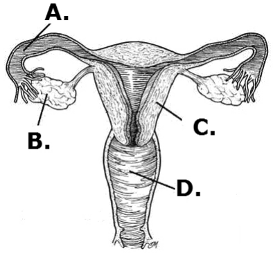 50.2. Kojim je slovom na slici označen spolni organ u kojem se događa oplodnja?