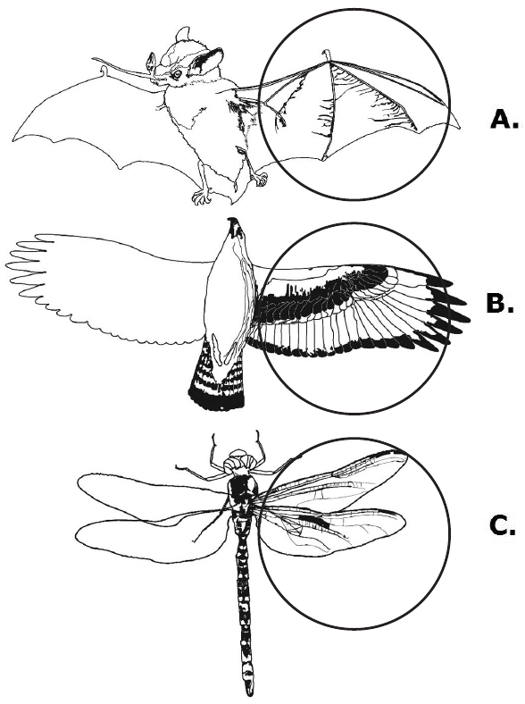 54. Na slikama A., B. i C. označena su krila različitih životinja.