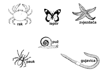 49.1. Razvrstajte životinje prikazane na slici u sljedeće sistematske skupine: člankonošci, kolutićavci, bodljikaši i mekušci.