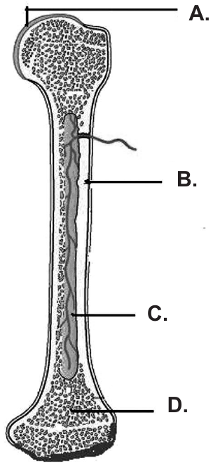 50.1. Kako se naziva površina kosti označena na slici slovom A.?