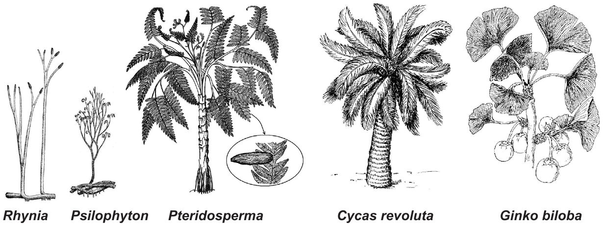 53.3. Kojoj skupini današnjih biljaka pripadaju „živi fosili" cikas i ginko prikazani na slici?