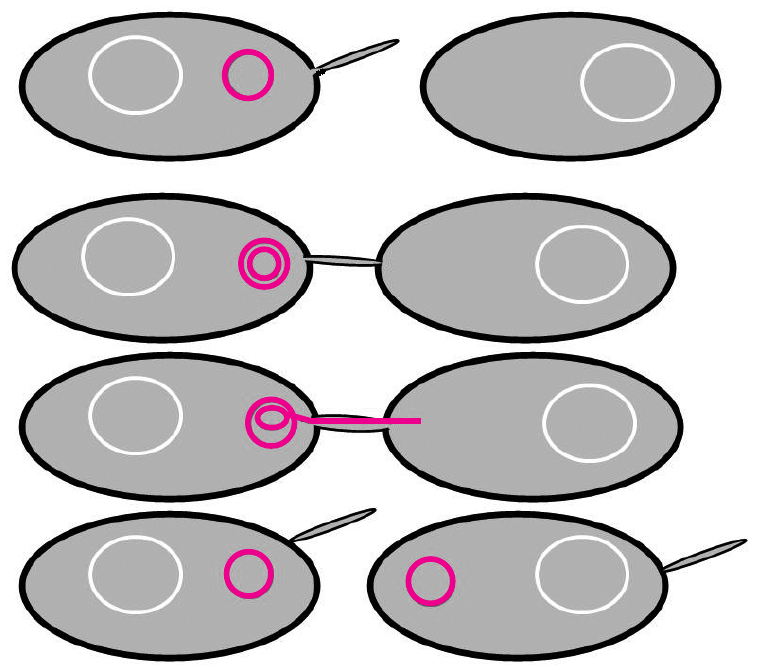 D. prenošenje plazmida iz jedne bakterije u drugu