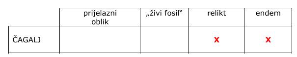 53.1. Znakom $X$ označite u koju skupinu dokaza pripada čagalj. Dopušteno je označiti znakom X više polja ili ostaviti neka polja prazna.
