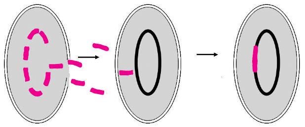 C. ugradnja dijelova nukleoida iz nežive bakterije u živu