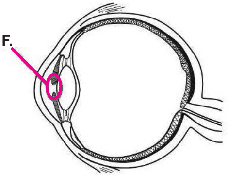 25. Slika prikazuje građu oka. Koji je dio oka na slici označen slovom F.?