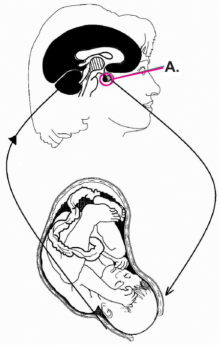 50. Slika prikazuje živčano-hormonsku regulaciju poroda.