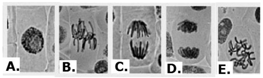 55. Slika prikazuje stanice korjenčića luka u različitim fazama mitoze.