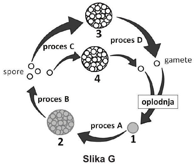 62.3. Na slici \mathbf{G} zaokružite tvorbe koje nastaju procesom mejoze.