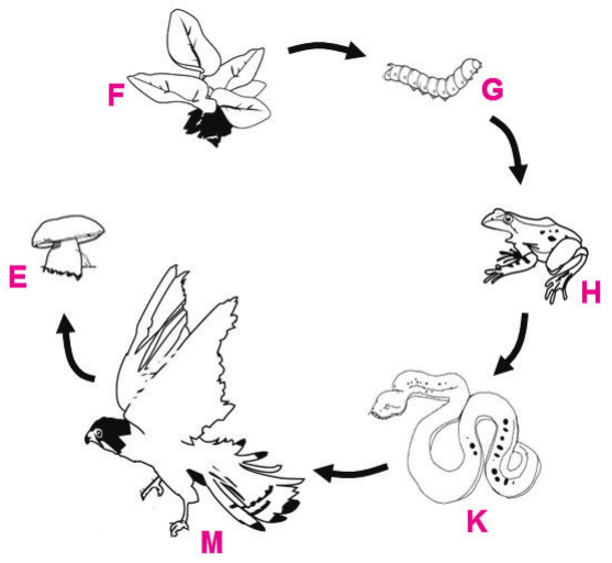 C. Kruženje tvari lancem omogućuje protjecanje energije od organizma F do organizma $\mathbf{E}$.