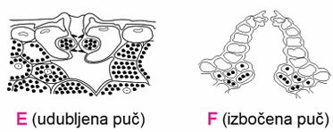 B. Biljke suhih staništa imaju s donje strane lista puči označene slovom $\mathbf{F}$.