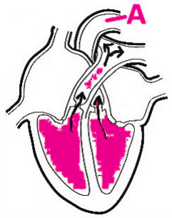 61.4. Kakva se krv, s obzirom na zasićenost plinovima, nalazi u krvnoj žili označenoj na slici slovom A? Jednom rečenicom objasnite svoj odgovor.