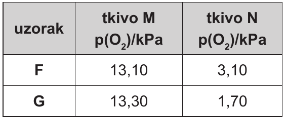 D. O₂ iz tkiva M u tkivo N najbrže difundira u uzorku G.