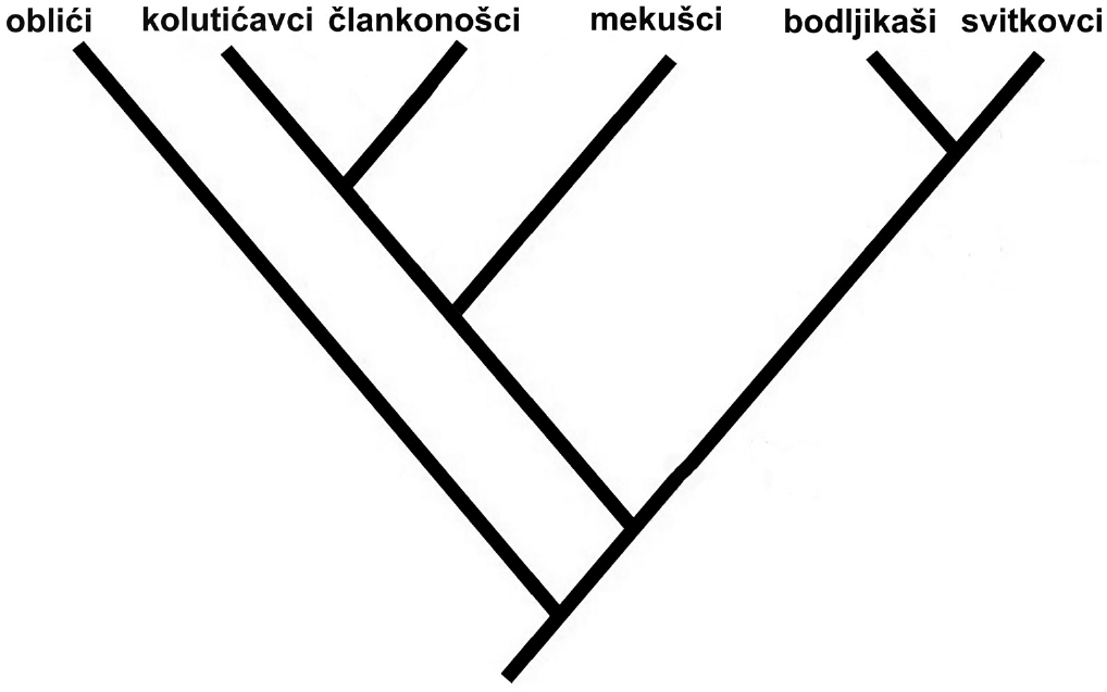 Pozorno promotrite sliku koja prikazuje filogenetsko stablo životinja.