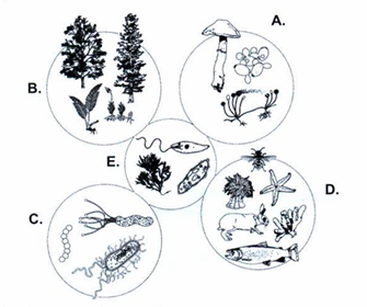 Slika prikazuje pet carstava živih bića.