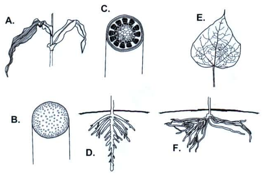47.1. Koji od prikazanih organa pripadaju jednosupnicama? Na crtu upišite slova kojima su označeni ti organi.