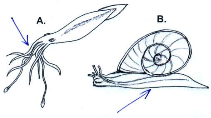 48.1. Kojim je slovom označen najrazvijeniji mekušac na slici?