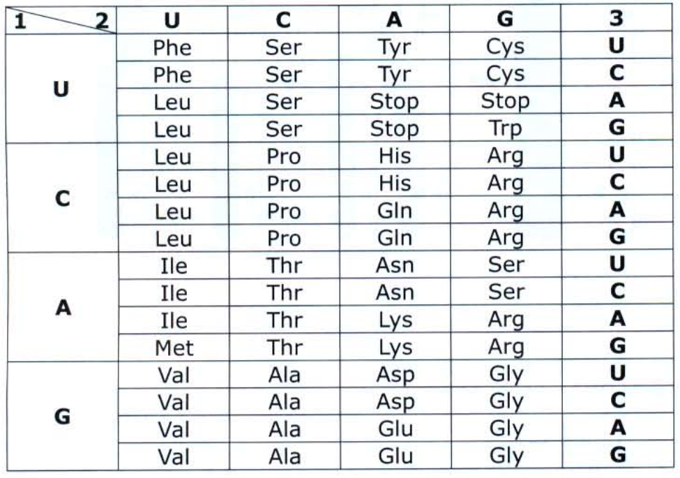 52.1. Navedeni niz kodona na mRNA nosi uputu za neki peptid. Uz pomoć tablice napišite redoslijed aminokiselina u tome peptidu.
