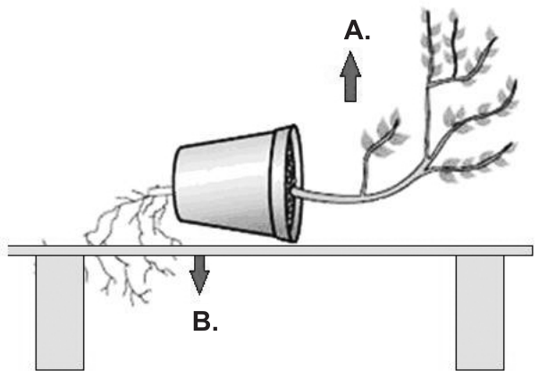 48.3. Koji vanjski podražaj uzrokuje rast korijena u smjeru strjelice B.?