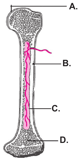 51.1. Kako se naziva dio kosti označen slovom $C$? Koja je njegova uloga u djetinjstvu? Slovo C. označava Uloga
