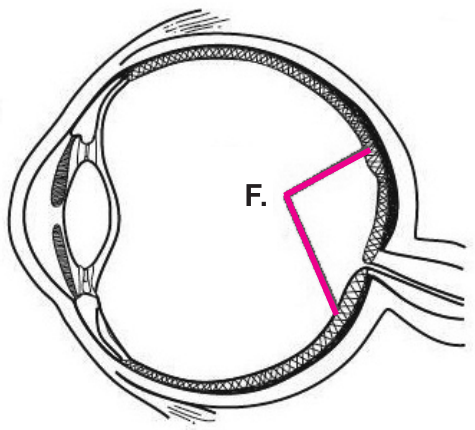 24. Slika prikazuje građu oka. Koji je dio oka označen na slici slovom F.?