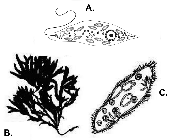 47.3. U koju se skupinu protista/protoktista ubraja organizam koji je na slici označen slovom B.?