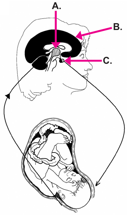 50. Slika prikazuje živčano-hormonsku regulaciju poroda.