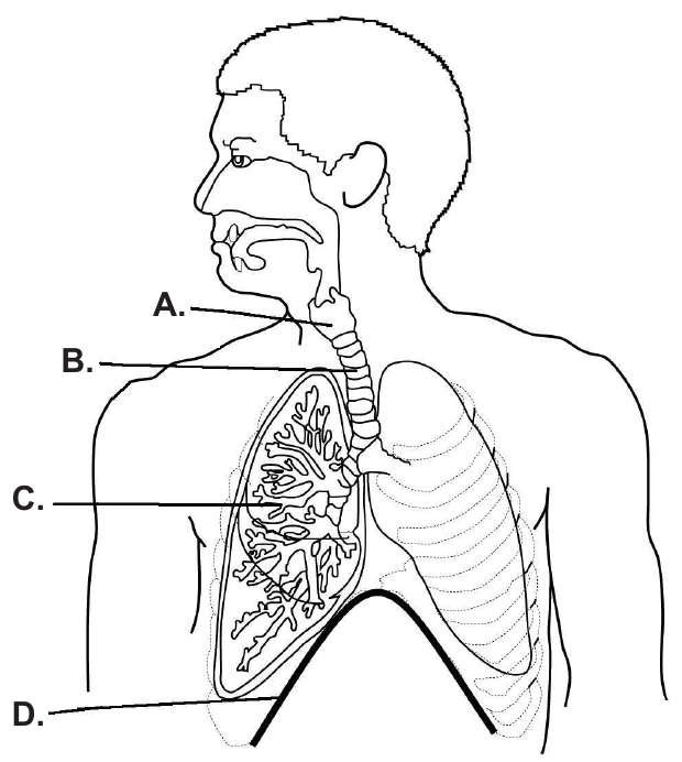 51.1. Kojim je slovom na slici označen grkljan?