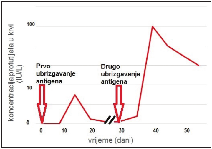 A. Stvara se manje protutijela tijekom duljeg vremena.