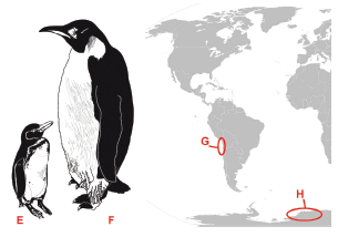 Područje rasprostranjenosti | Pingvin označen slovom |