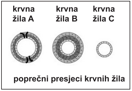 62.4. Zaokružite na slici F poprečni presjek koji odgovara krvnim žilama koje ne mogu utjecati na brzinu protoka krvi. Jednom rečenicom objasnite svoj odgovor.