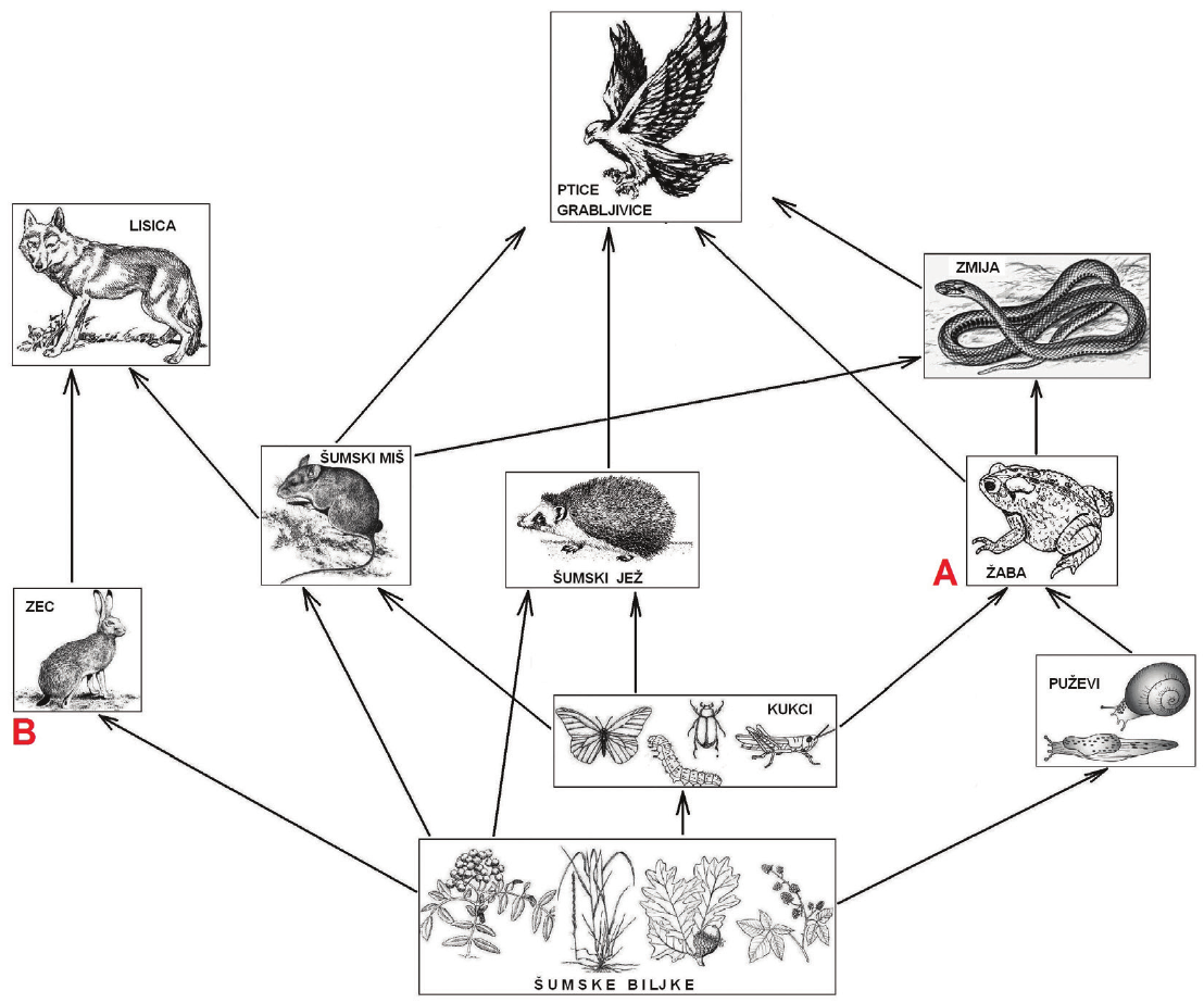 Na slici je prikazana hranidbena mreža šumskoga ekosustava.