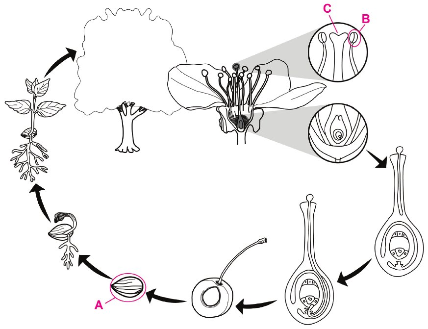 56. Na slici je prikazan životni ciklus trešnje.