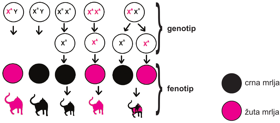 9. Na slici je prikazano nasljeđivanje boje dlake mačke.