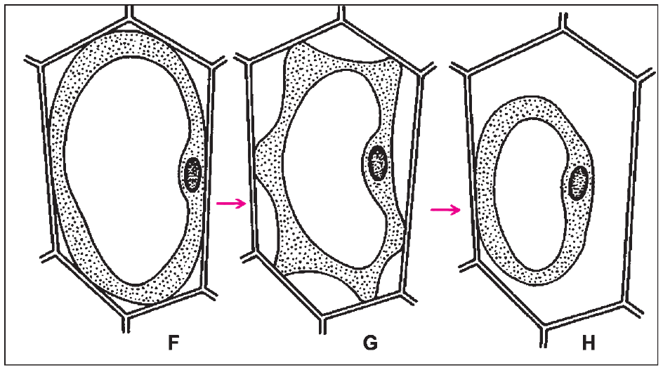 Pozorno promotrite sliku mikroskopskoga preparata na kojoj su prikazane promjene u stanici jedne vrste biljke označene slovima F, GiH.