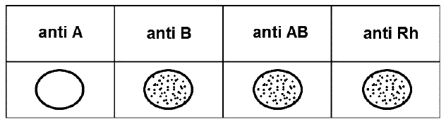 Pozorno promotrite sliku koja prikazuje rezultate određivanja krvne grupe osobe koja želi biti darivatelj krvi. Točkice prikazuju aglutinate (slijepljene eritrocite) u kapljici krvi.