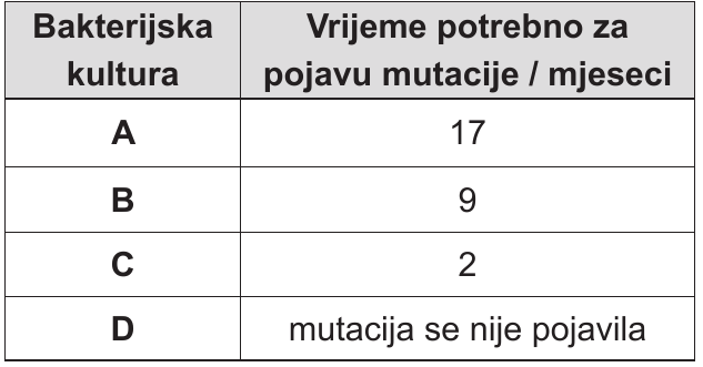 42.2. Istraživanje je ponovljeno s identičnim početnim bakterijskim kulturama i nakon dvije godine dobiveni su rezultati prikazani u tablici.