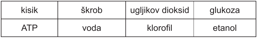 U tablici je navedeno osam pojmova kojima se trebate koristiti kao odgovorima na pitanja. Pojedinim se pojmovima moguće koristiti više puta, a nekima uopće ne. Broj pojmova koje je potrebno navesti u odgovoru označen je u zagradi uz pitanje.