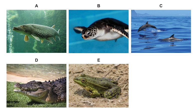 Pozorno promotrite slike koje prikazuju pet vrsta kralježnjaka označenih slovima od A do E.