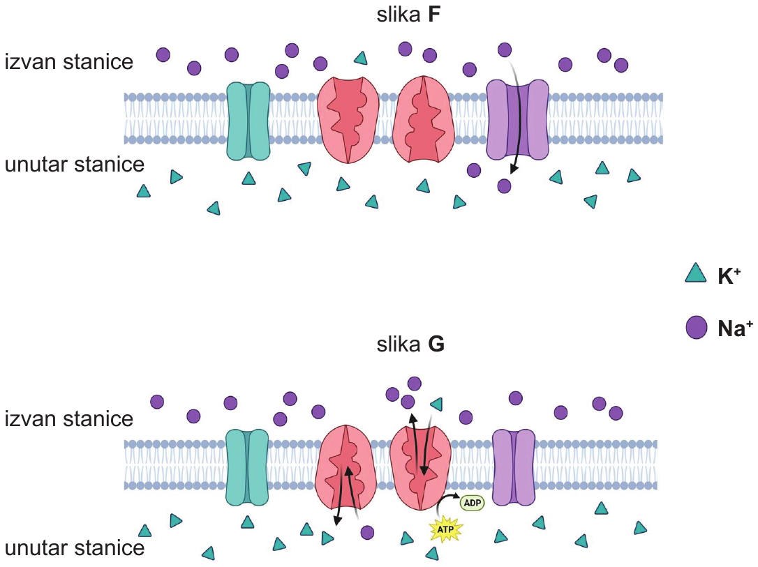 C. slika $\mathbf{G}$ jer nema pasivnoga prijenosa $\mathrm{Na}^{+}$i $\mathrm{K}^{+}$kroz proteinske kanale