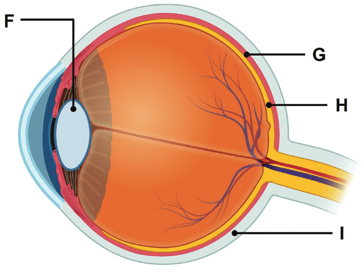 Pozorno promotrite sliku na kojoj su neki dijelovi oka čovjeka označeni slovima od F do I.