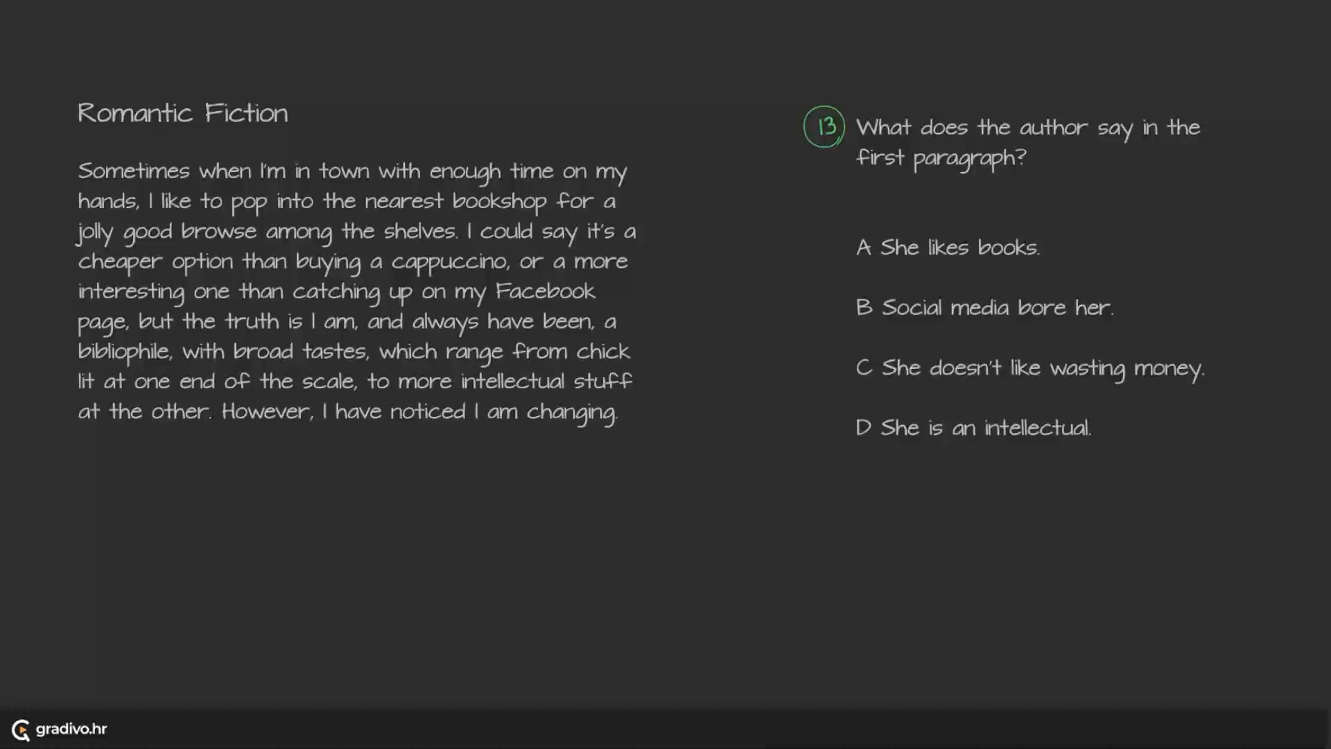 Why does the author like romantic novels?