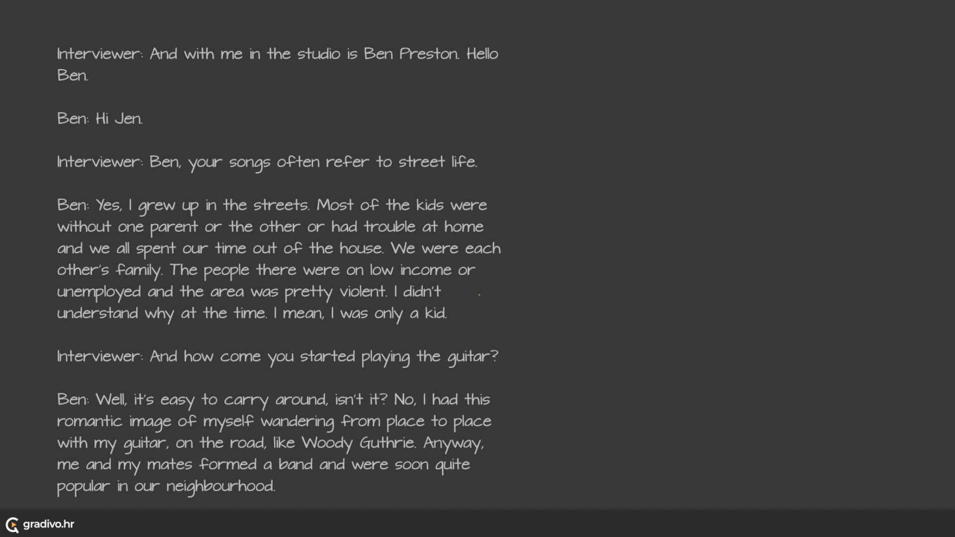 You will hear a radio interview with singer Ben Preston.