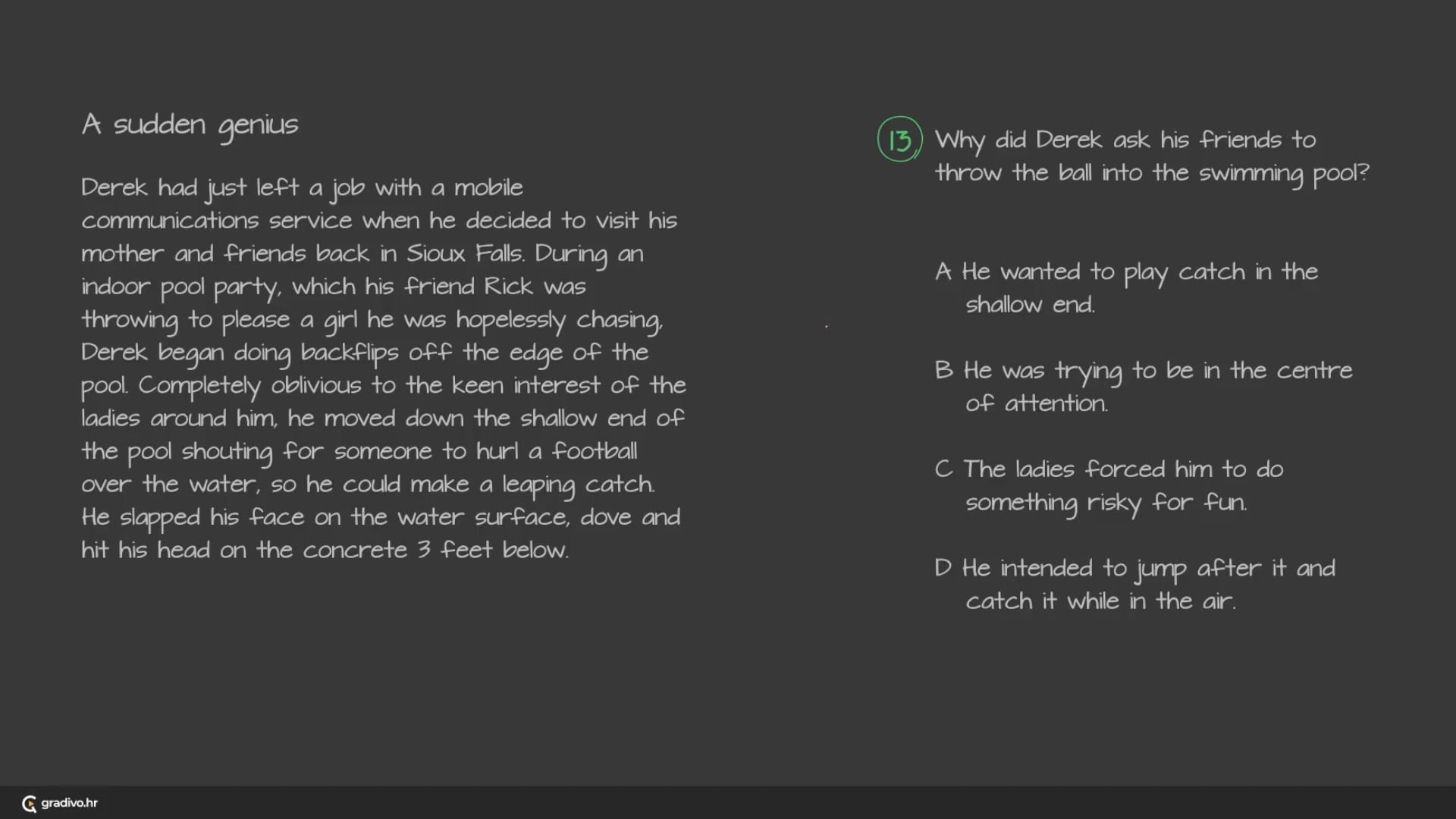 Why did Derek ask his friends to throw the ball into the swimming pool?