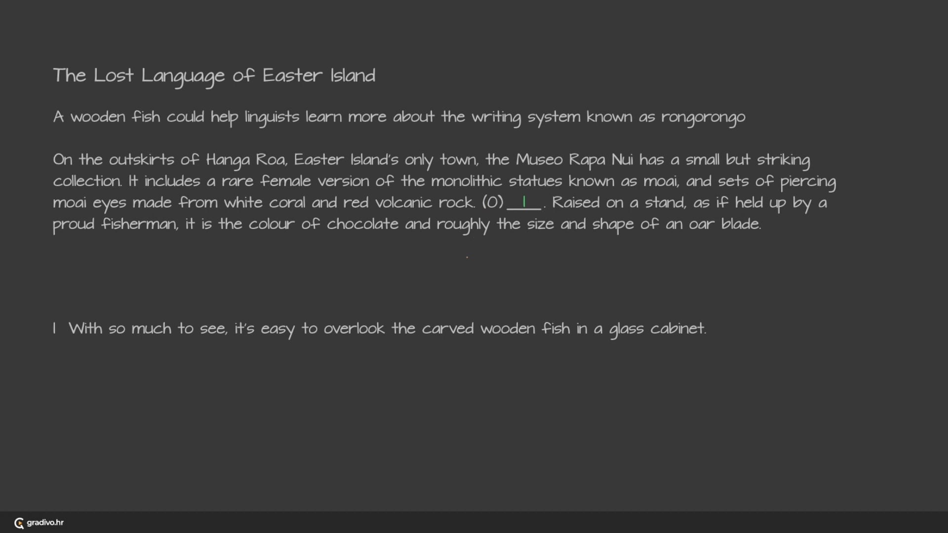 On the outskirts of Hanga Roa, Easter Island’s only town, the Museo Rapa Nui has a small but striking collection. It includes a rare female version of the monolithic statues known as moai, and sets of piercing moai eyes made from white coral and red volcanic rock. (0) With so much to see, it’s easy to overlook the carved wooden fish in a glass cabinet. Raised on a stand, as if held up by a proud fisherman, it is the colour of chocolate and roughly the size and shape of an oar blade.