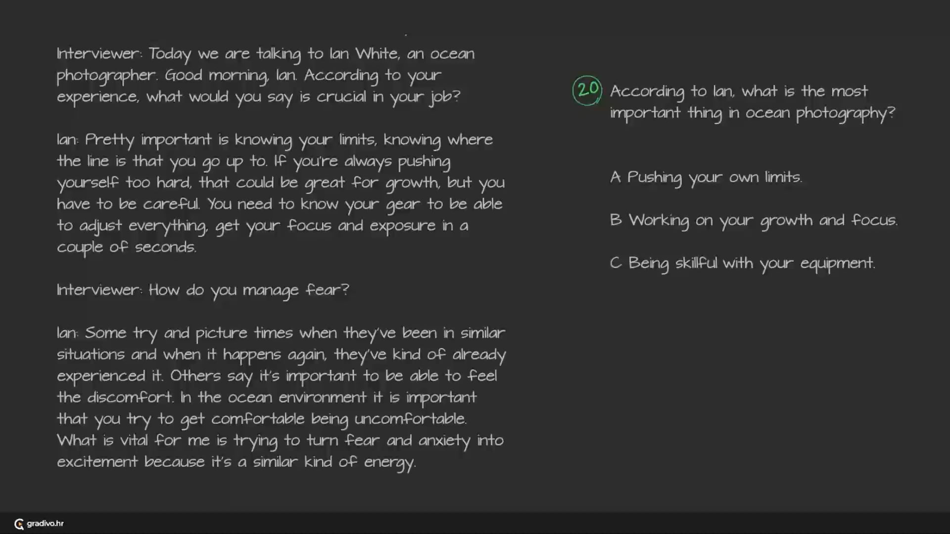 You will hear a radio interview with Ian White, an ocean photographer.