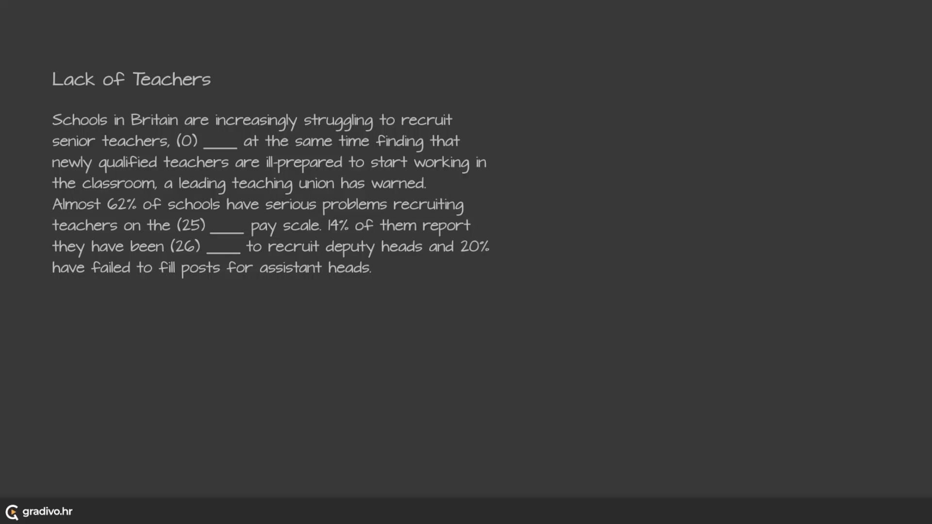 Schools in Britain are increasingly struggling to recruit senior teachers, (0) while at the same time finding that newly qualified teachers are ill-prepared to start working in the classroom, a leading teaching union has warned.