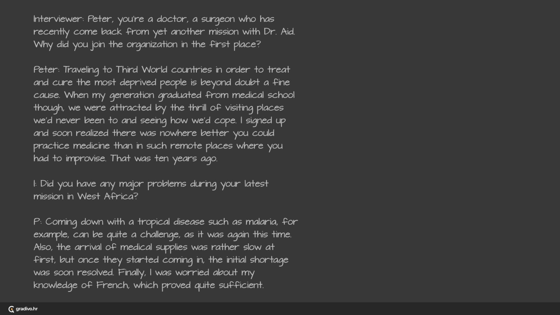 Peter feels that working for Doctor Aid