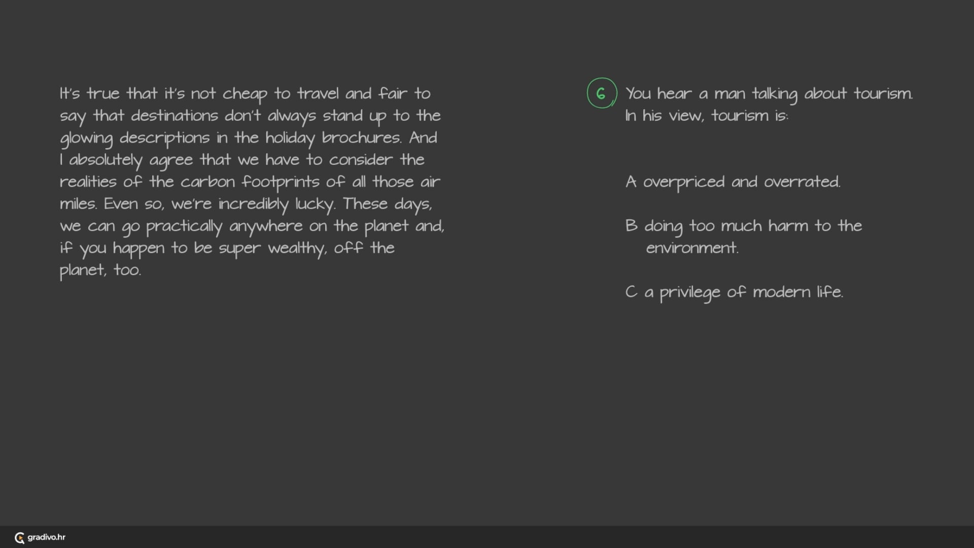 You hear a woman talking about a trip with her boyfriend. Where did they go?